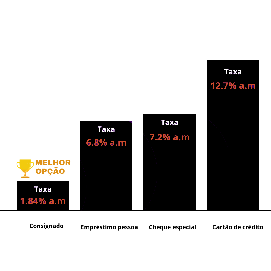 O crédito consignado é rápido e descomplicado, ou seja, a aprovação sai muito mais rápido. Além disso tem parcelas pré-fixadas, maiores prazos e juros mais baixos em comparação aos demais créditos do mercado, compare e veja.